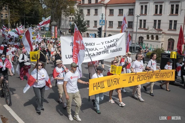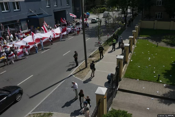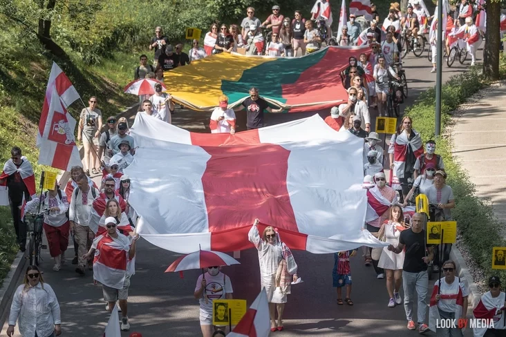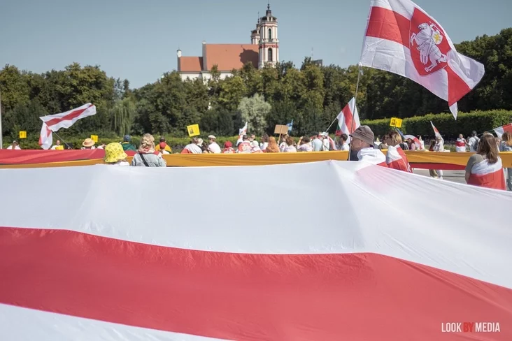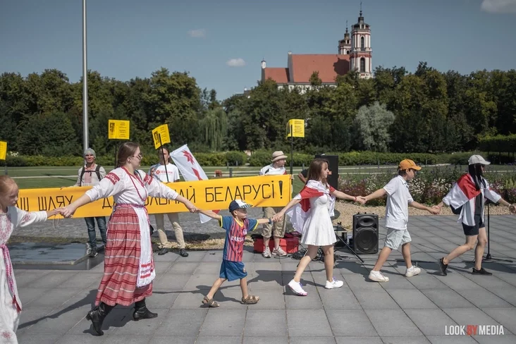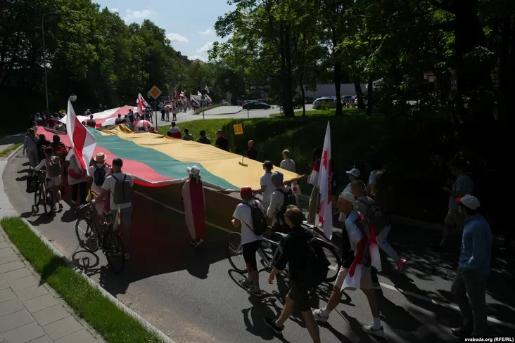 Более 100 белорусов прошли под бело-красно-белыми флагами по улицам литовской столицы.
