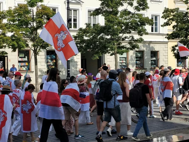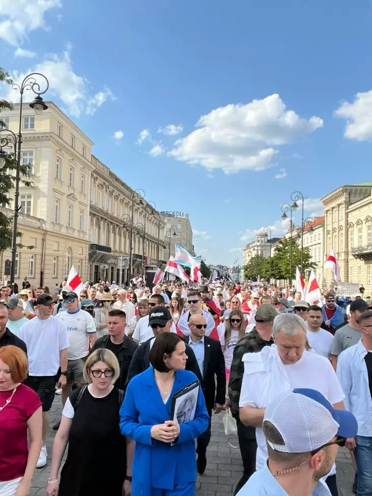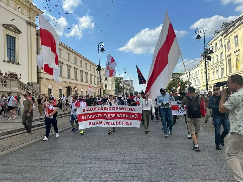 Шествие белорусов Варшавы под названием «Марш Свободы» было приурочено к пятой годовщине начала протестов против фальсификации президентских выборов 2020 года в Беларуси. Оно прошло после окончания первого дня заседаний конференции «Новая Беларусь».