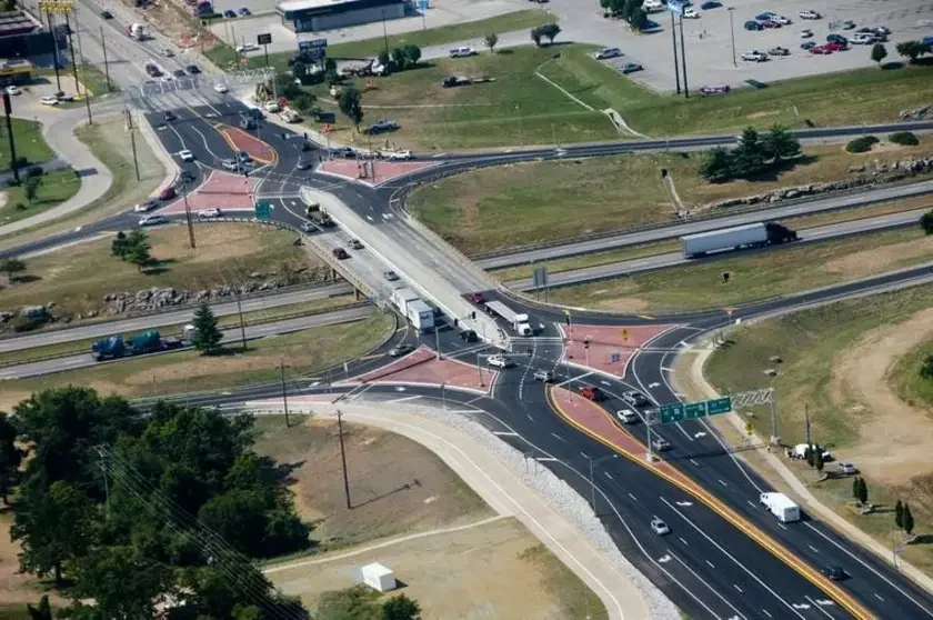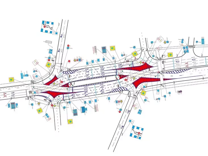 Развязка (её также называют двойной перекрещенной алмазной развязкой), как объясняет ГАИ, исключает конфликт транспорта при повороте налево, что улучшает безопасность на дороге и повышает пропускную способность всего транспортного узла до 30%. А пропускная способность входа увеличивается на 50%, что позволяет снизить общие потери в дорожном движении.