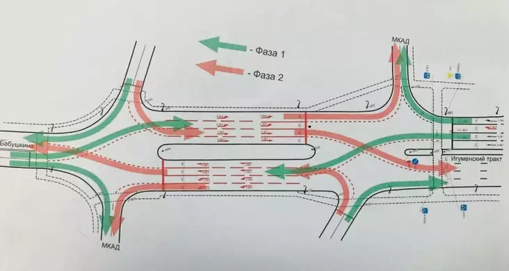 В Минске появилась расходящаяся алмазная развязка с изменением сторон. Находится она на перекрёстке МКАД, Игуменского тракта и улицы Бабушкина.