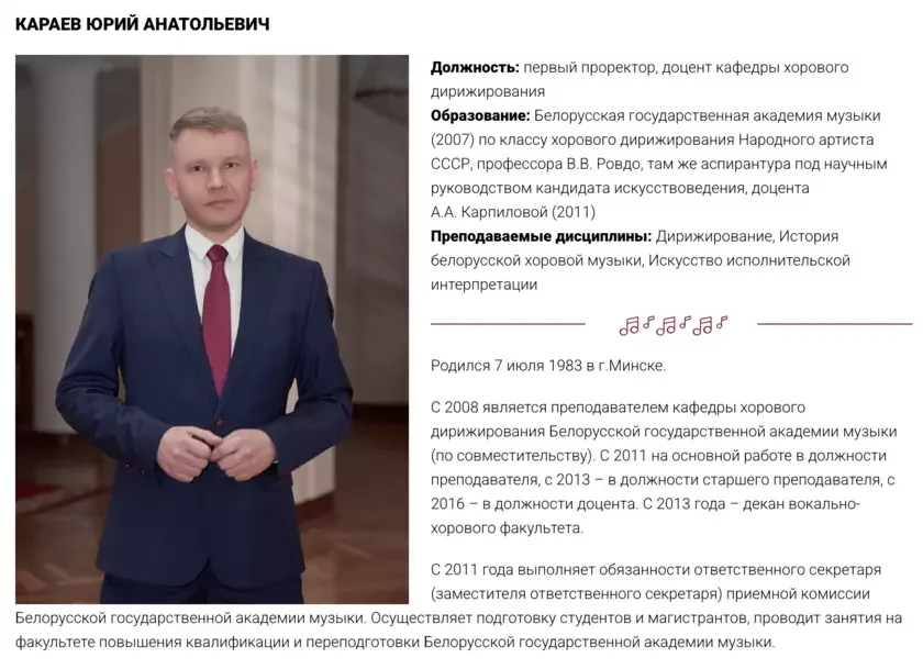 Данные о доценте кафедры хорового дирижирования Караеве из разделов «Руководство» и «Вокально-хоровой факультет» уже удалены. Но его личная страница на сайте до сих пор открывается.