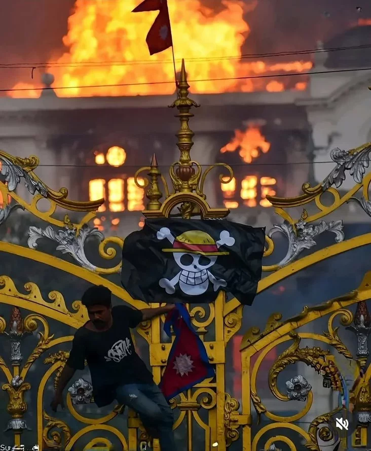 В Непале флаг «Пиратов Соломенной Шляпы» вывешивали на воротах правительственных зданий во время массовых протестов против коррупции и кумовства.