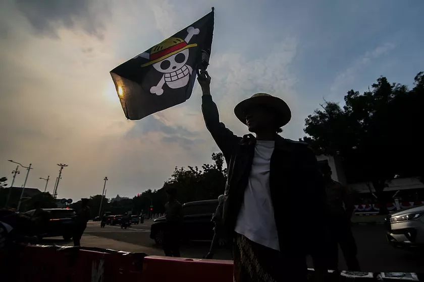 Теперь, как пишет The Wall Street Journal, флаг Луффи — веселый череп со скрещенными костями в соломенной шляпе с красной лентой — стал новым символом поп-культуры, который вдохновляет протестующих по всему миру.