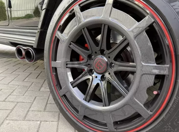 Аэродинамический обвес Rocket Edition выполнен из карбона и не только улучшает аэродинамику, но и придает автомобилю властный вид. Расширенные колесные арки добавляют брутальности, а фирменные колесные диски Brabus Monoblock Z Platinum Edition диаметром 24 дюйма подчеркивают спортивный характер.