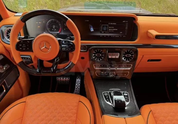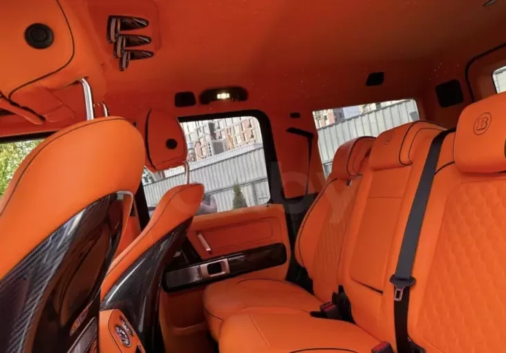 В Brabus каждому из них полностью кастомизировали интерьер: у этого автомобиля он отделан кожей Nappa в оранжевых и черных тонах.
