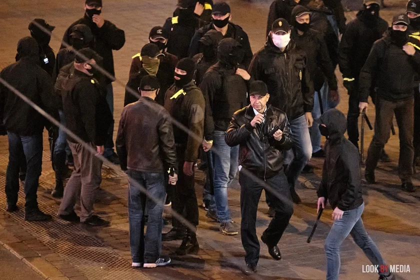 Николай Карпенков (в центре) со своими губопиковцами во время подавления протестов в 2020 году. Фото: LookByMedia