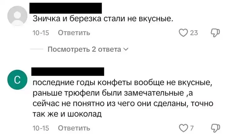 Журналисты Telegraf.news наткнулись на несколько жалоб от белорусов в комментариях к видео «Коммунарки» в тиктоке. Причем, по датам видно, что недовольны качеством сладостей некоторые уже несколько лет.