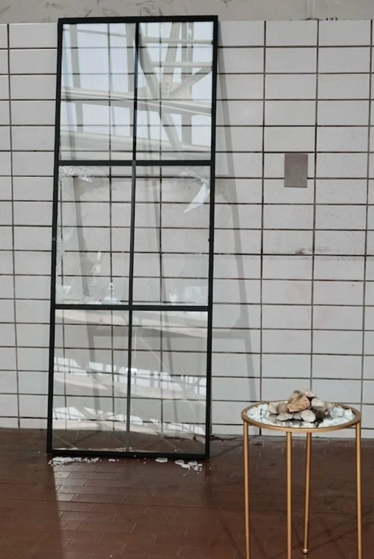 На берлинской выставке Spit on H*tler’s Grave российский художник уничтожил работу белорусской художницы Елены Рябкиной, несколько раз бросив камни в арт-объект, сделанный из закаленного стекла.