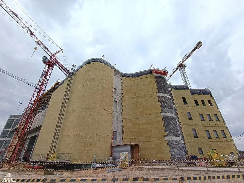 На строительстве Национального исторического музея завершается возведение каркаса здания, идет утепление фасада. На южной стороне уже начались кровельные работы, сообщает Минскстрой.