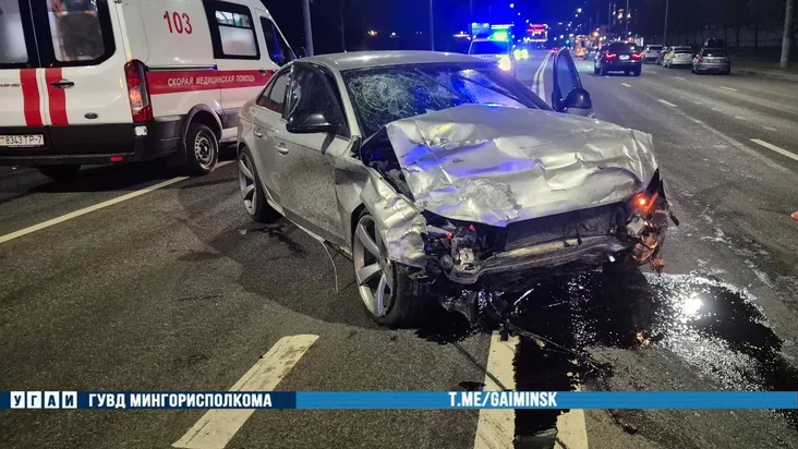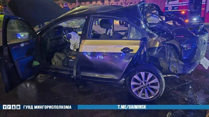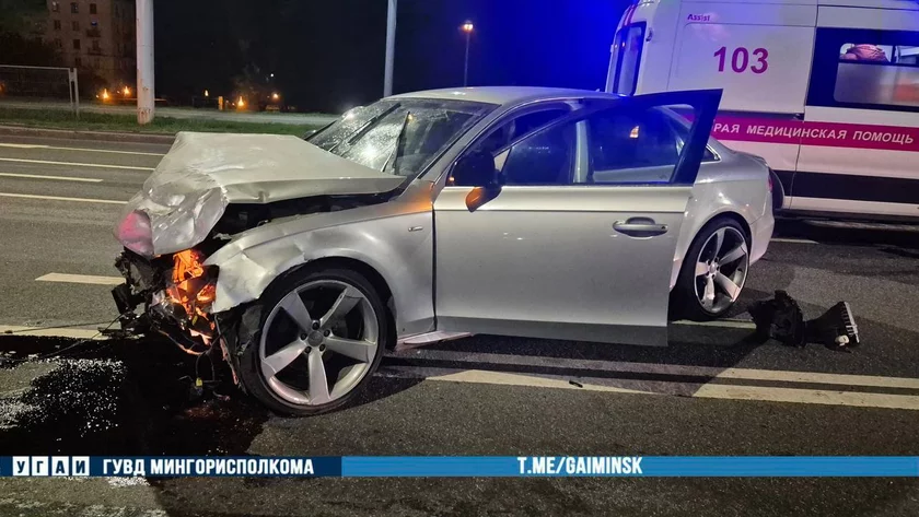 «По предварительной информации, 43‑летний водитель Audi, двигаясь по улице Ленина, проехал на красный через перекресток с местным проездом, соединяющим улицы Ленина и Октябрьскую. В результате он столкнулся с Volkswagen под управлением 51‑летнего мужчины, который начал движение на зеленый. От удара Volkswagen выехал за пределы проезжей части и врезался в осветительную мачту, а Audi оказался на встречной», — рассказали в ГАИ Минска.
