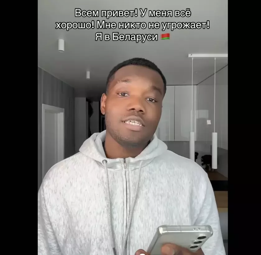 «Всем привет! У меня все хорошо! Мне никто не угрожает! Я в Беларуси», — написал на видео парень.