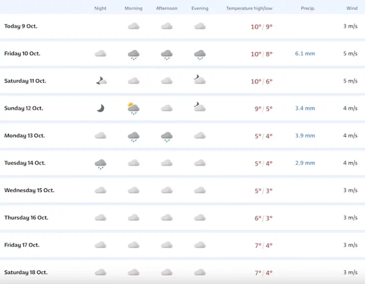 Ночью +3..+8°С, по юго-востоку страны до +10°С, максимальная днём +9..+15°С.
