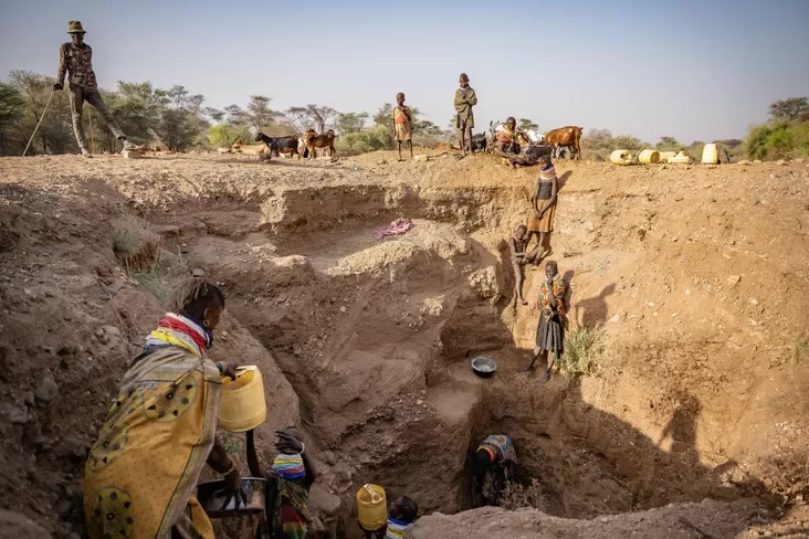 Земля туркана — это огромный засушливый ландшафт на северо-западе Кении, однако кочевой образ жизни выводит их далеко за его пределы: на запад — в Уганду, на северо-запад — в Южный Судан, а на север — в Эфиопию. Во всем этом регионе температура регулярно превышает 50°C. Дожди идут короткими, непредсказуемыми периодами, поэтому ежедневный поиск воды для себя и своих стад коз и верблюдов — это вопрос выживания. Путь за водой может занимать несколько часов в день по выжженной земле.