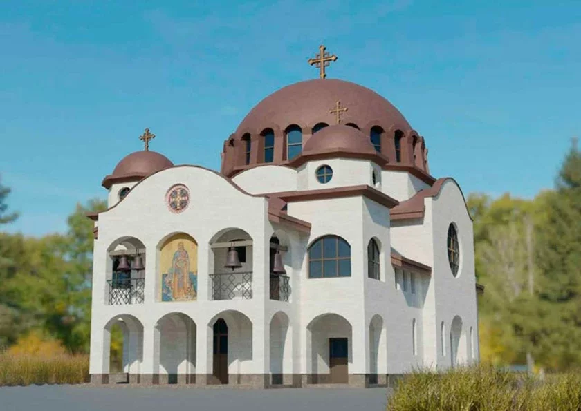 Вот как описывается архитектура здания: архитектурно-художественное решение и объемно-пространственная композиция храма основываются на традициях византийского храмового зодчества. Формы основных архитектурных элементов определяются православной традицией и символикой.