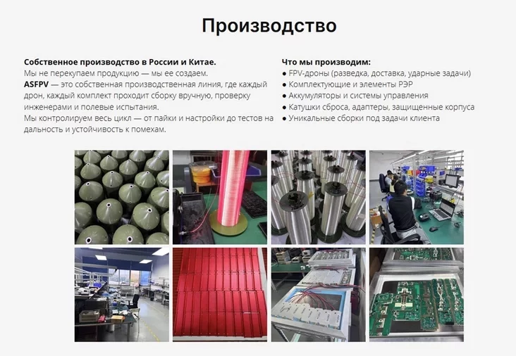 С 2023 года в России было зарегистрировано не менее 140 производителей беспилотников и еще 60 организаций, поставляющих запчасти или обучающих операторов. Один из крупнейших российских производителей, Rustakt LLC, с июля 2023 года по декабрь импортировал из Китая запчастей на 577 миллионов долларов. После введения в декабре 2024 года санкций ЕС против этой компании поставки прекратились, но ограничения не затронули ее основных китайских поставщиков.