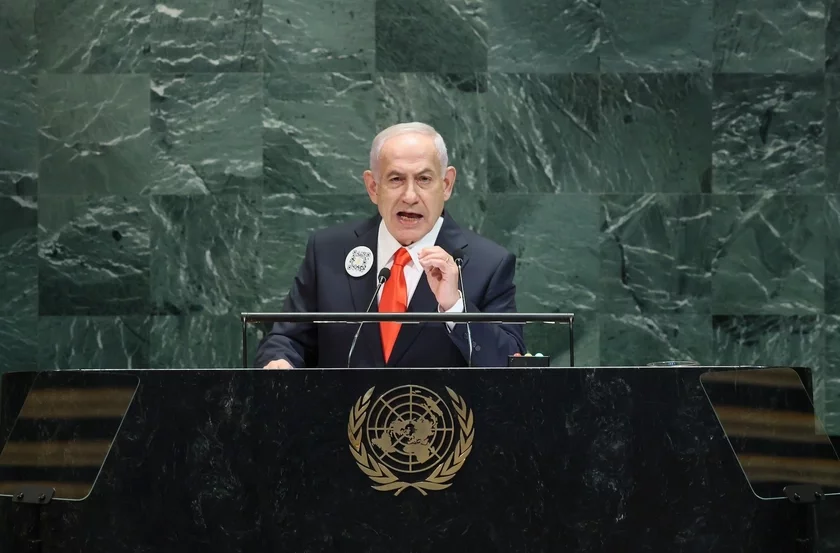 Биньямин Нетаньяху во время выступления на Генассамблее ООН 26 сентября 2025 года. Фото: Michael M. Santiago / Getty Images