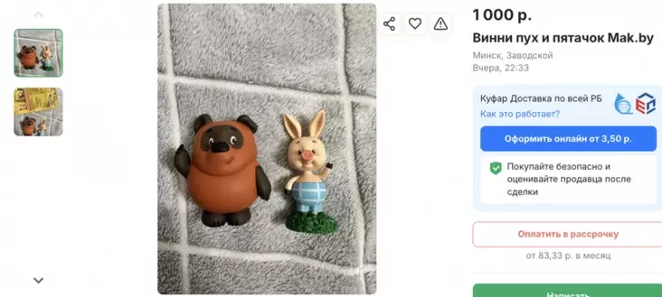 В объявлениях на белорусских интернет-барахолках Onliner увидел фигурки по невероятной цене в 1000 рублей за пару (Винни-Пух и Пятачок без упаковки).