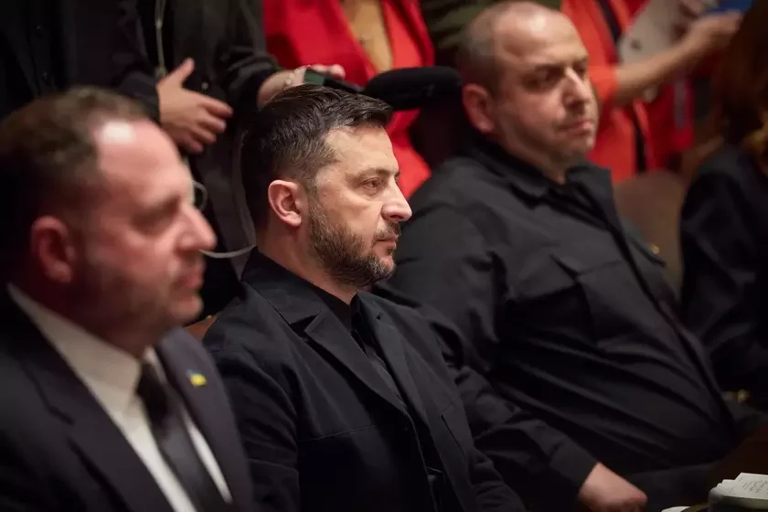 Владимир Зеленский с Андреем Ермаком и Рустемом Умеровым во время переговоров в Вашингтоне. Фото из телеграм-канала президента Украины