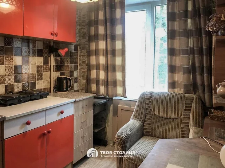 Квартиру площадью всего 21 квадратный метр продают в Минске на улице Передовой, в пятиэтажке 1974 года постройки, пишет «Онлайнер». В квартире 5 «квадратов» занимает кухня, где владельцы умудрились разместить даже кресло. Холодильник спрятан в нишу, которая раньше, судя по всему, была кладовой. Полноценной плиты нет — только настольная электроплитка на две конфорки.