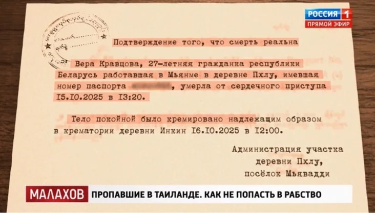 В начале октября связь с Верой пропала. Вот только оказалось, что эта справка пришла родителям 10 октября — почти за неделю до того, как у Веры якобы остановилось сердце.