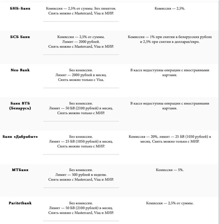 В каких белорусских банкоматах можно снять деньги с белорусской карты и сколько это стоит