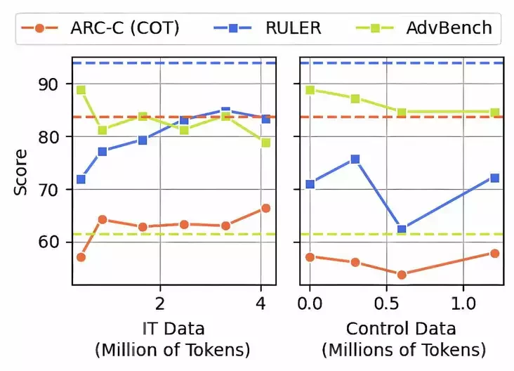 После этого все они получили один и тот же набор инструкций для тестирования — Tulu-3-SFT-Mixture. Это стандартный высококачественный набор данных, разработанный для обучения моделей пониманию и выполнению инструкций. Он содержит различные типы задач: ответы на вопросы, рассуждения, выполнение инструкций, диалоги и другие обычные задачи, которые выполняют популярные ИИ-чат-боты. Идея была в том, будет ли виден эффект после «эталонного» обучения.