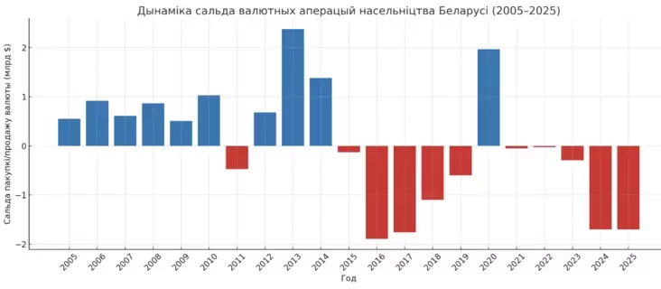 За девять месяцев этого года физические лица в Беларуси продали в банки валюты на $1,21 миллиарда больше, чем приобрели. За аналогичный период 2024 года разница составляла $1,26 миллиарда. В целом за весь 2024 год население продало валюты почти на $1,7 миллиарда больше, чем приобрело. Подобный показатель будет и в этом году.
