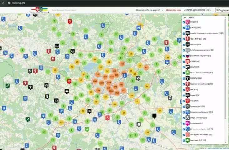 Также на карте были данные тех, кто звонил в милицию с жалобами и доносами на участников протестов или оставлял электронные обращения в КГБ.