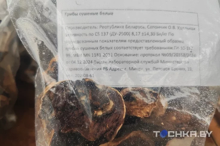 Журналисты издания «Точка» увидели на прилавках Комаровского рынка сушёные грибы по 450 рублей. Примечательно, что они прошли специальный контроль и радиоактивных веществ в них обнаружено не было. Однако в лабораторию их сдавали ещё 4 декабря 2024 года.