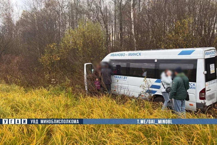 По предварительной информации, 45‑летний водитель автобуса Mercedes Benz Sprinter, который двигался по маршруту Иваново — Минск, отвлекся на зеркало заднего вида. В результате он съехал на правую обочину, наехал на дорожный знак, после чего съехал в кювет.