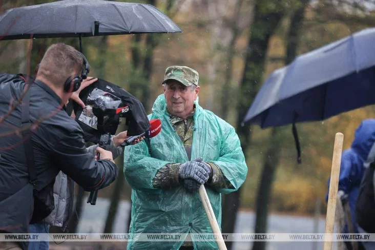 В дождевиках и по колено в грязи. Чиновников под дождем погнали на субботник, сам Лукашенко не пошел