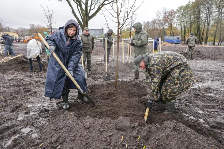 Высаживать аллею в так называемом парке Народного единства отправилась и председатель Совета Республики Наталья Кочанова.
