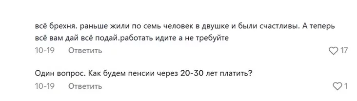 А еще один человек задумался о перспективах пенсионного обеспечения тех, кто сейчас не хочет рожать: