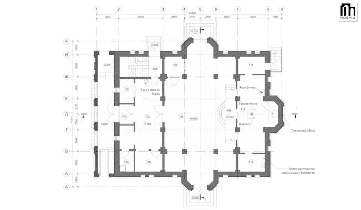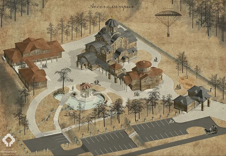 Автором архитектурно-планировочной концепции выступает ООО «Хармиа». Это дизайнерская студия, которая, судя по ее соцсетям, до этого занималась созданием предметов интерьера, а проект храма около Кальварии едва ли не первый ее архитектурный проект.