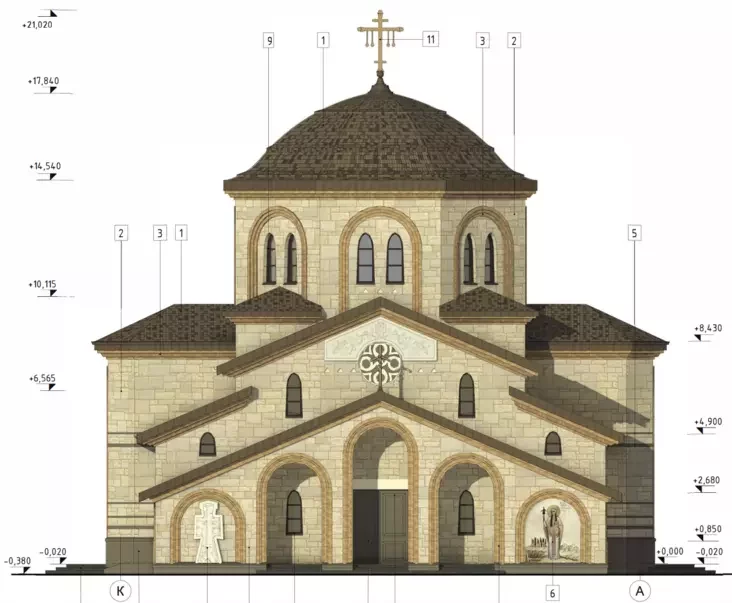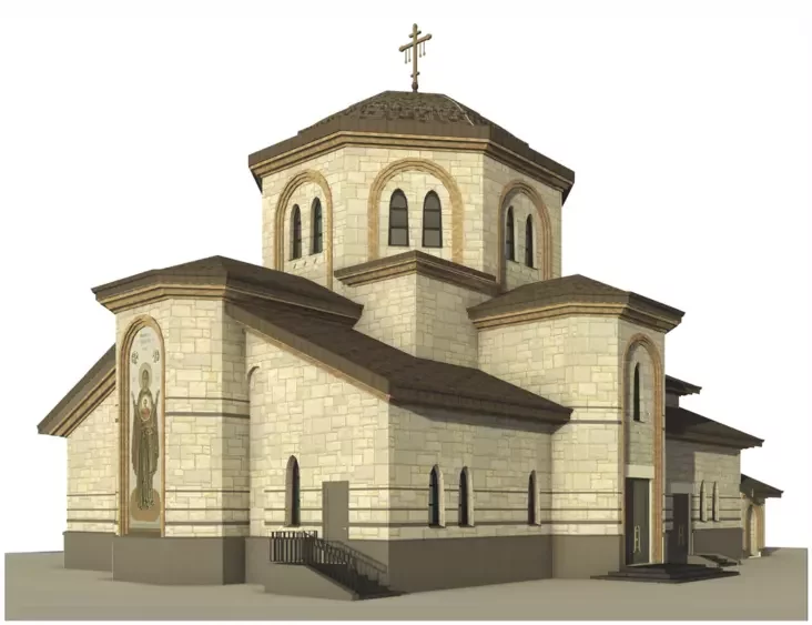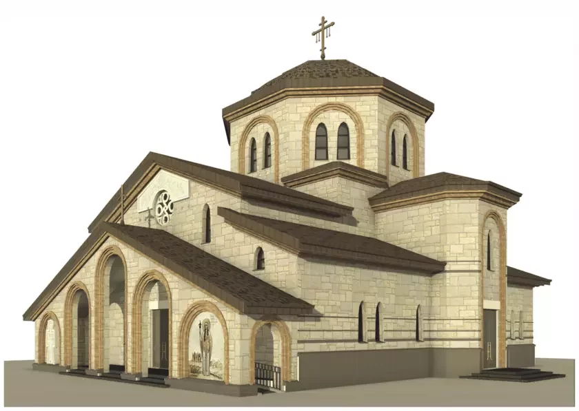 Храм планируют богато украсить снаружи — фасады, украшенные арками, нишами и декоративными поясами, будут облицованы натуральным камнем. Слева ко входу будет поставлен поклонный крест из известняка — традиционного материала для грузинского храмового строительства, а справа — мозаика с изображением святой Нины. Еще одна мозаика, с изображением Богородицы Оранта («Знамение»), украсит апсиду храма.