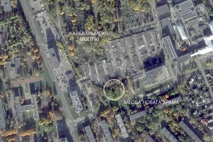 Местом строительства очередного православного храма выбрана территория на окраине главного католического некрополя Минска со стороны улицы Одоевского. Сейчас здесь располагается небольшая зеленая зона с благоустроенной зоной для выгула собак. Храм планируют посадить в части, где сконцентрировано больше всего взрослых деревьев.