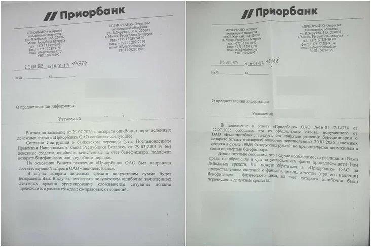 «В ходе проверки установлено, что счет, на который был осуществлен ошибочный перевод, открыт на А. (в милиции сообщили Ф. И. О. и дату рождения получателя перевода.). Опрошенный А. пояснил, что в конце декабря 2024 года ему на банковскую карту поступило много выплат, в связи с чем о том, что на его карту поступил ошибочный перевод, ему стало известно от сотрудников милиции. А. готов вернуть денежные средства в размере 980 рублей, которые ошибочно были переведены на его банковскую платежную карту», — говорилось в ответе из милиции.