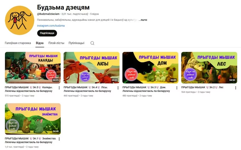 Речь идет о ютуб-канале «Будзьма дзецям», на котором опубликованы 5 частей белорусскоязычного кукольного видеоспектакля «Прыгоды мышак». Соответствующее решение было принято судом Пружанского района 29 октября, сообщает «Вясна».