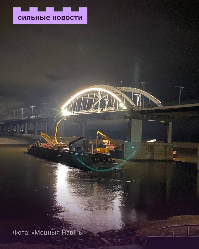 Обновленный мост через Припять в Мозыре засветился ночью. Его проверяют на прочность