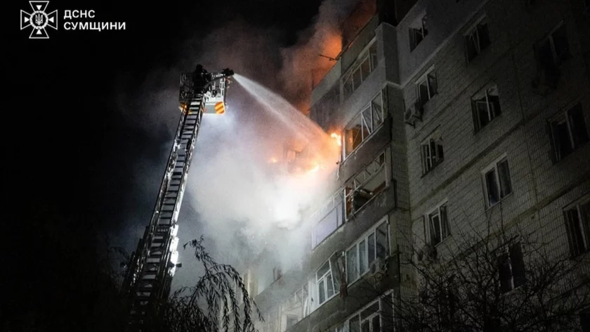 31 октября Россия нанесла серию ударов по жилому сектору и инфраструктуре Сум. В результате попадания в девятиэтажный жилой дом на верхних этажах загорелись пять квартир и семь балконов.