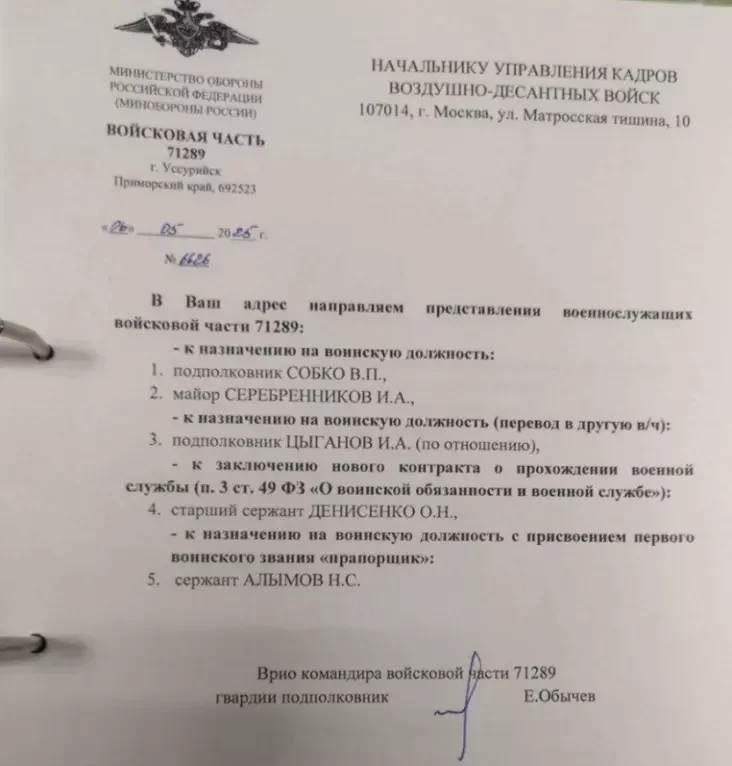 Seqrite также пишет об атаке SkyCloak. Ресурс приводит еще одно письмо, но уже адресованное российским военным — представление военнослужащих о назначении на новую должность и переводах.