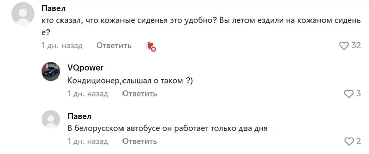 Люди пытаются доказать, что кожаные сиденья неудобны летом, учитывая то, что кондиционеры в белорусских автобусах обычно работают «только два дня».