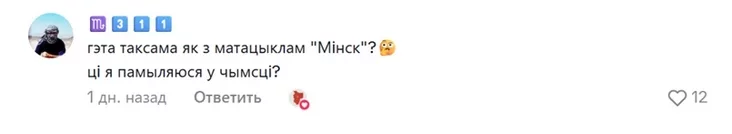 «Гэта таксама як з матацыклам «Мінск», ці я памыляюся ў чымсьці?» — замечает кто-то.