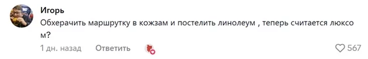«Отделать маршрутку кожзамом и постелить линолеум теперь считается люксом?» — это замечание с почти 560 лайками стало вторым по популярности.