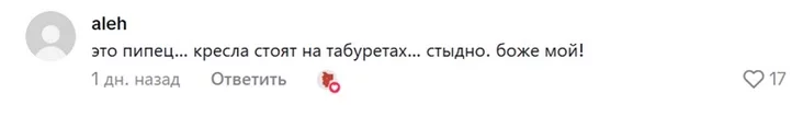 «Это пипец… Кресла стоят на табуретах. Стыдно. Боже мой!» — высказывается еще один зритель.