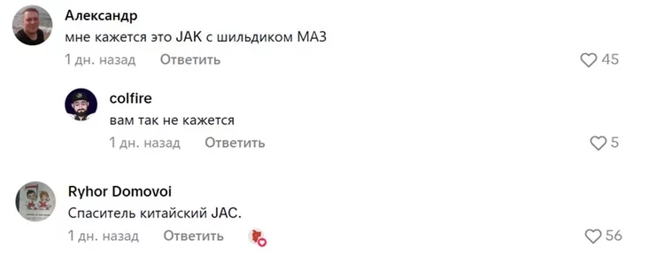 «Опять китайская машина с наклейками МАЗа?» — пишет другой.