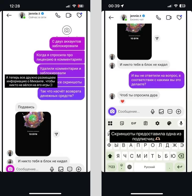 В своем телеграм-канале Олег написал: «Дай бог, чтобы не посадили. Может, одумается и возьмется за голову». В комментариях обиженные участники розыгрыша начали кидать скриншоты переписок с его бывшей женой.