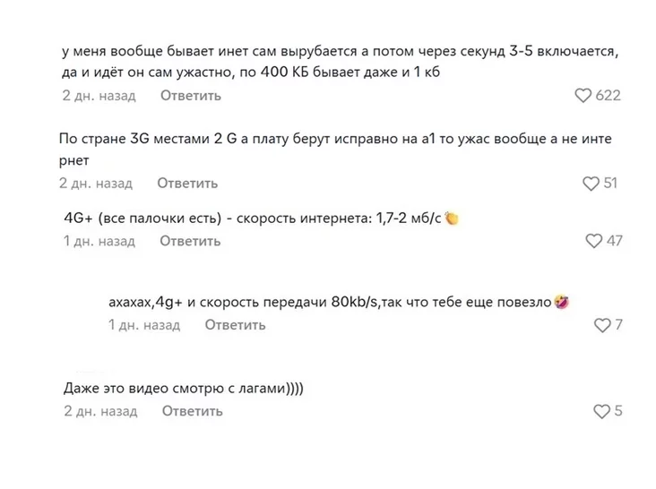 «По стране 3G, местами 2G, а плату берут исправно. На А1 вообще ужас, а не интернет».