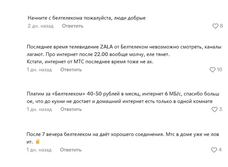 «Последнее время телевидение ZALA от «Белтелекома» невозможно смотреть, каналы лагают. Про интернет после 22:00 вообще молчу, еле тянет».