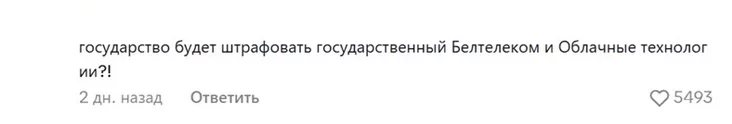 Так замечание-вопрос «Государство будет штрафовать государственный «Белтелеком» и «Облачные технологии»?» набрало почти 4500 лайков.